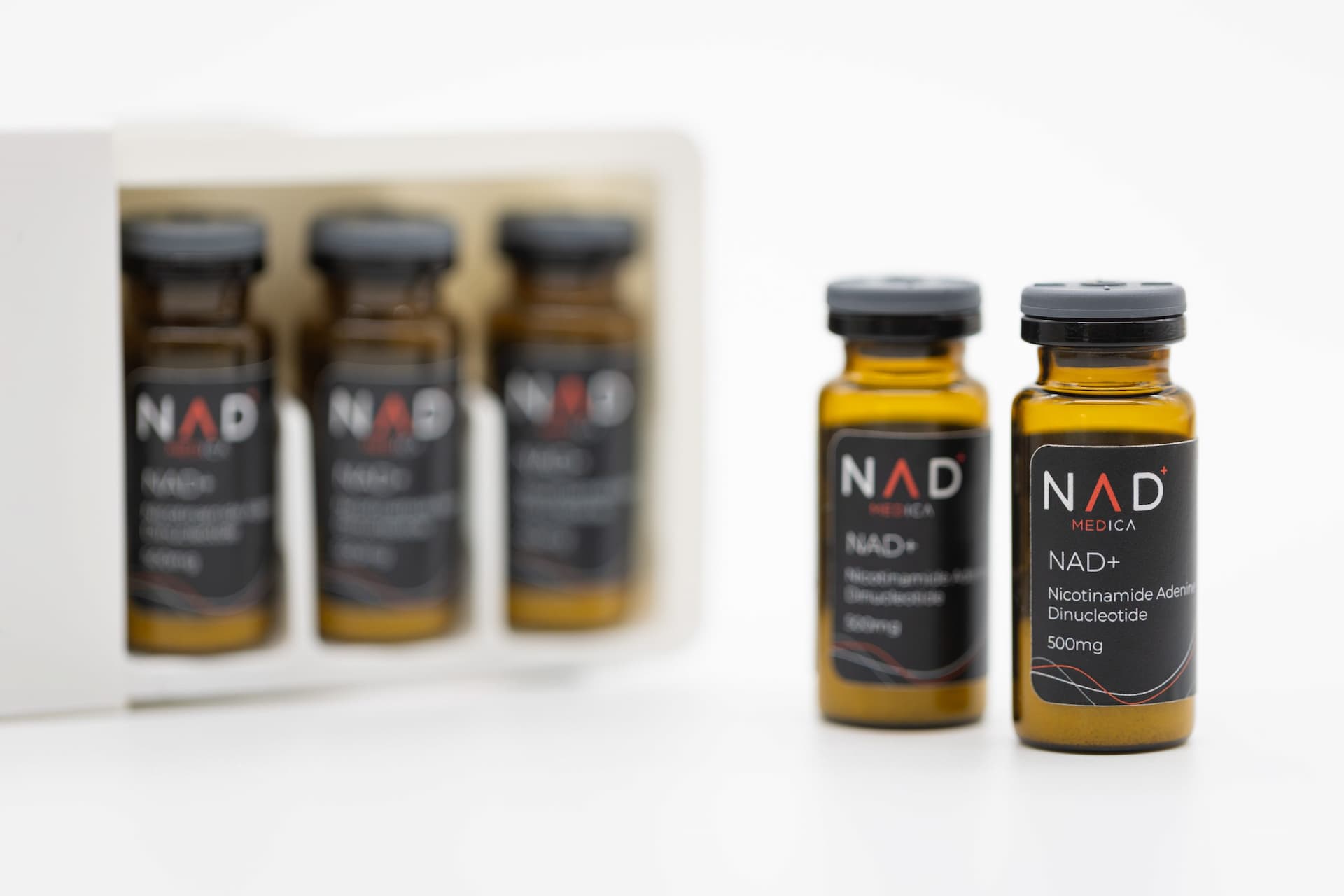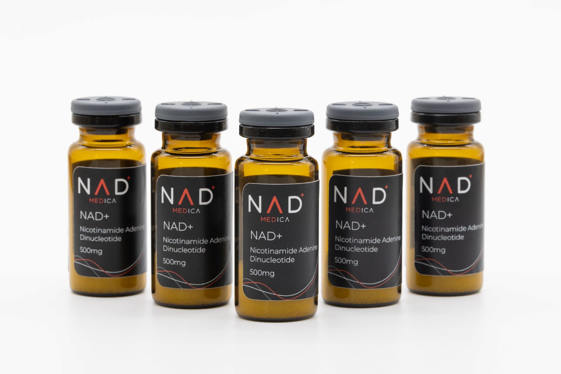Each multi-dose vial contains 500 mg NAD+ suitable for IV/SQ/IM injection (minimum order pack of 5 vials).